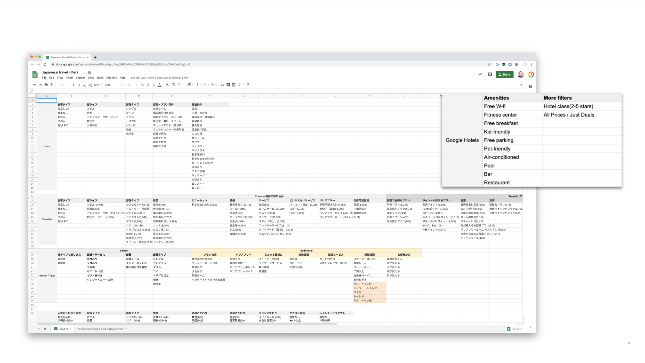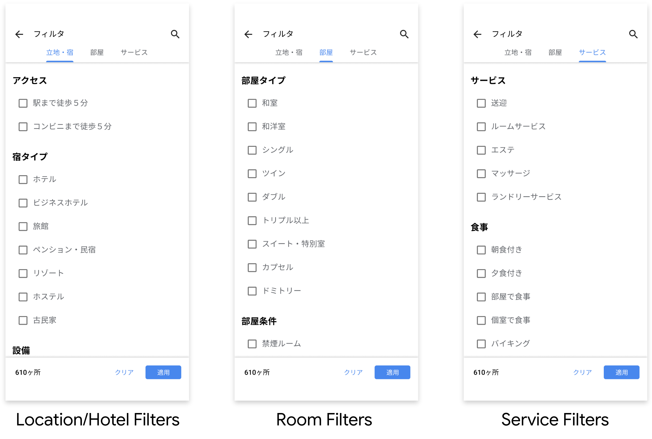 When we audited the filter categories for the top Japanese booking sites we saw they had as many at 100 filter categories. The current Google Travel product had 12.