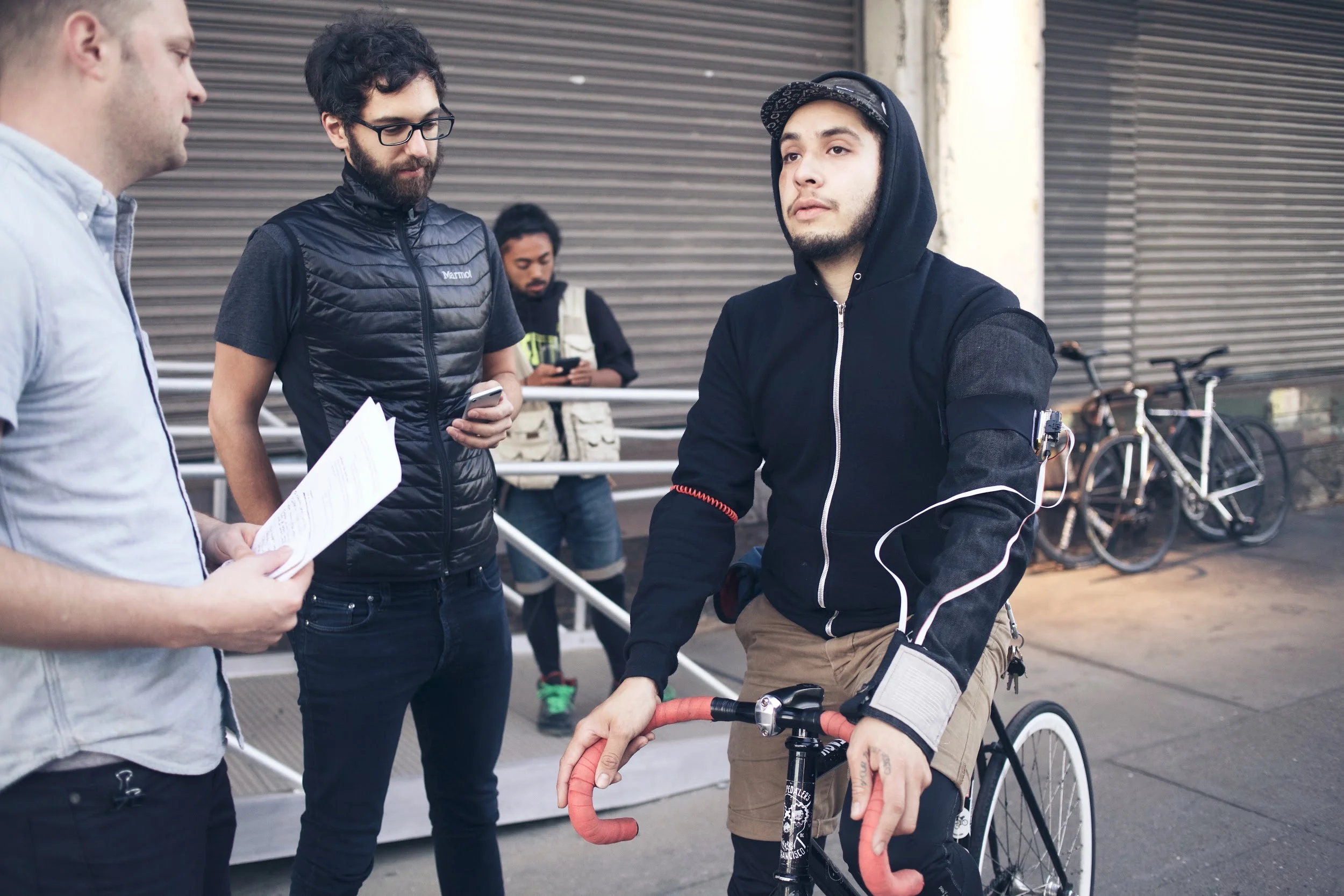 Levi’s established consumers of their Commuter Line as our target—urban cyclists looking for stealthier performance wear—we set out to gather inspiration from users of all types. We spoke to daily commuters, but also more “extreme” users: bike couriers, rallycat racers, and bicycle- powered food carts. In interviews, group exercises, and wear tests with urban cyclists and other workers on the go, we heard over and over again that cyclists needed a way to stay connected, while still living in the moment. That meant being able to answer calls, hear text messages, get the next direction, and control their music without using a screen.